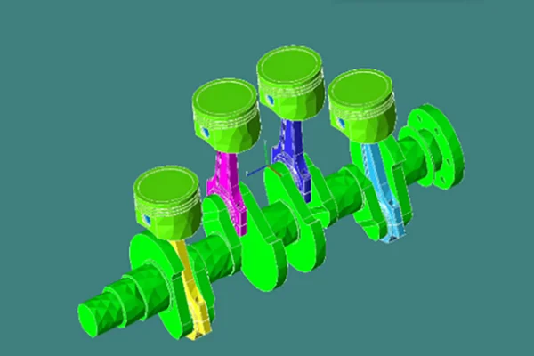 ピストン、コンロッド、クランクシャフト等を剛体と設定し各部材の動きの連系を確認した事例です。