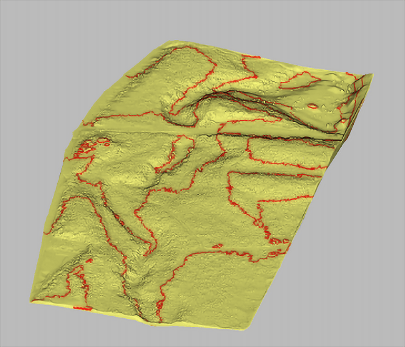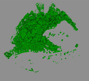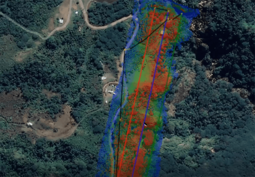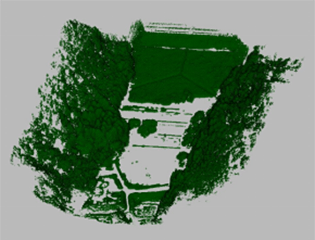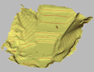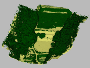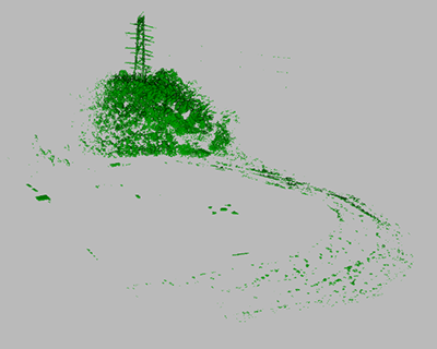 密集する森林から地表データと植生データを分離する作業を行ないました。エリアサイズは 300x 130m、コンタ作成まで数時間で完了しました。