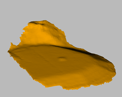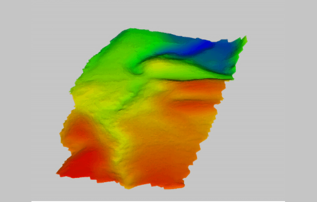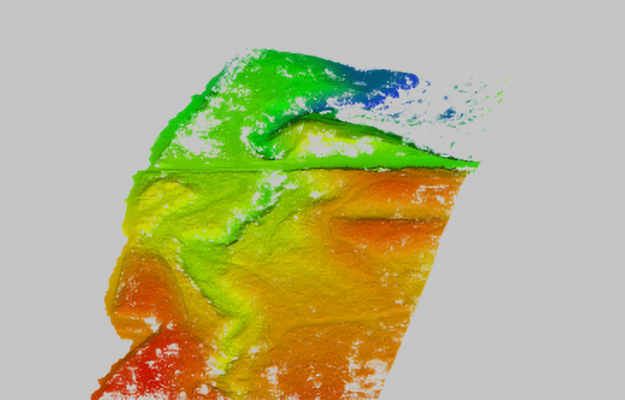 上記画像の左は解析前のデータ、右は解析後のデータ。右側のカラーマップはZ値で、下の黒が0cmで上の白まで50cm。