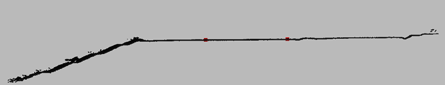 この粗悪なデータでも、ストリップアライン・ソフトウェアは生データを元に自ら軌跡を作り上げ、ストリップアラインを実行し、合成されたひとつの点群データを作成します。その結果は、通常のワークフローで作成したデータと比べ、精度的に多少劣るほどで、かなり良いデータを生成します。本ソフトウェアは、緊急時に現場でデータを見たいという要望に対応できる製品です。
