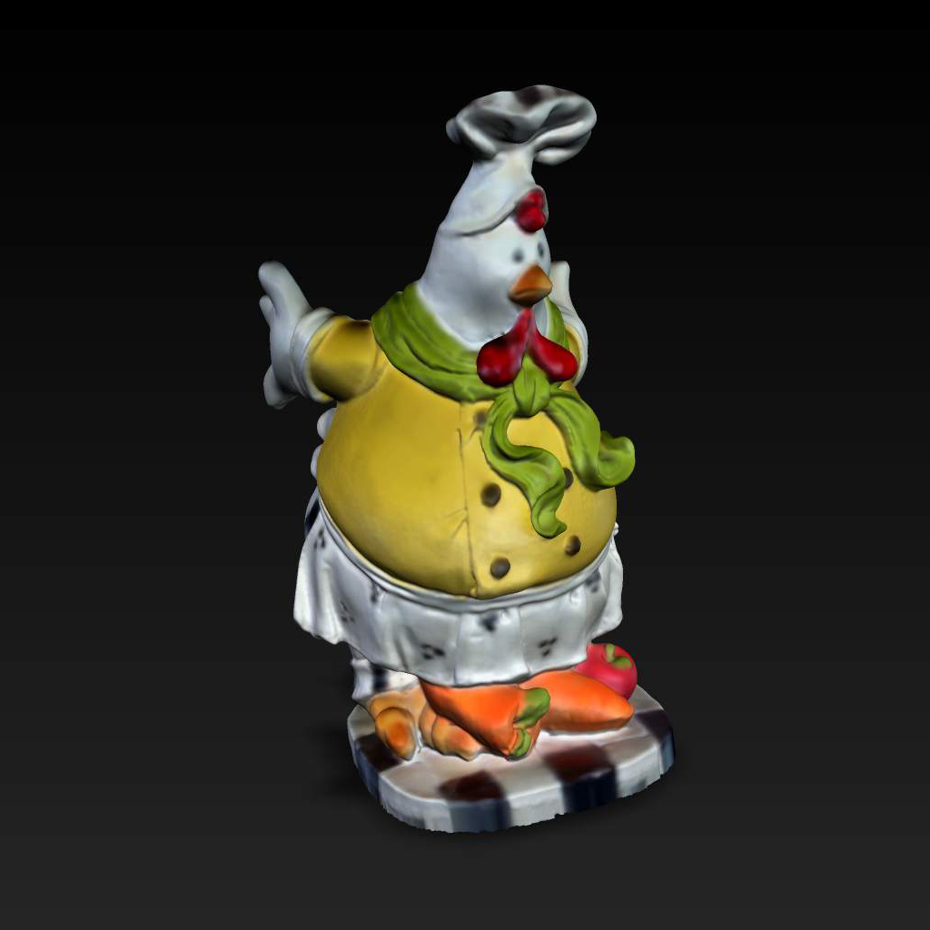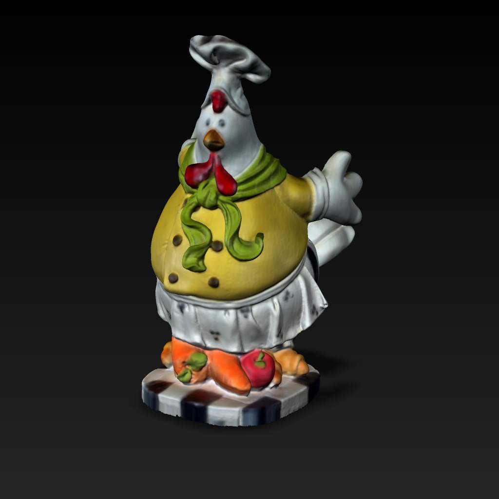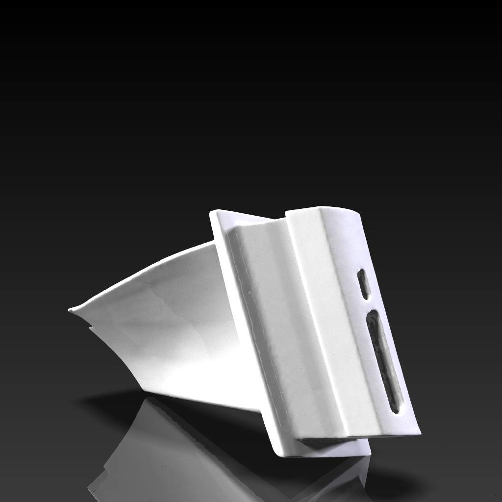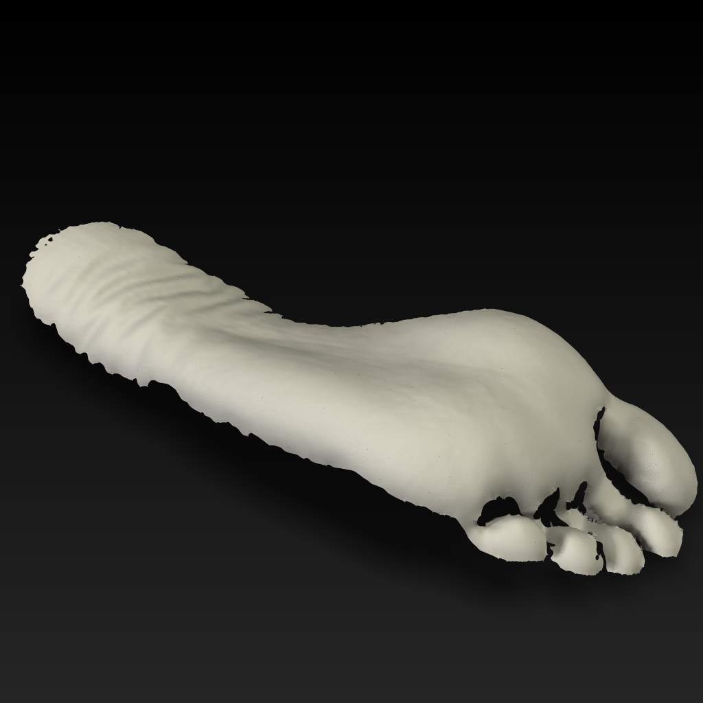 Nikon D50カメラと解像度 800x600のプロジェクターを使い計測しています。RapidForm 2006を使いメッシュを作成しました。画像の貼り付けは、FlexScan3Dの中のautomatic UV Projectionを使用しています。